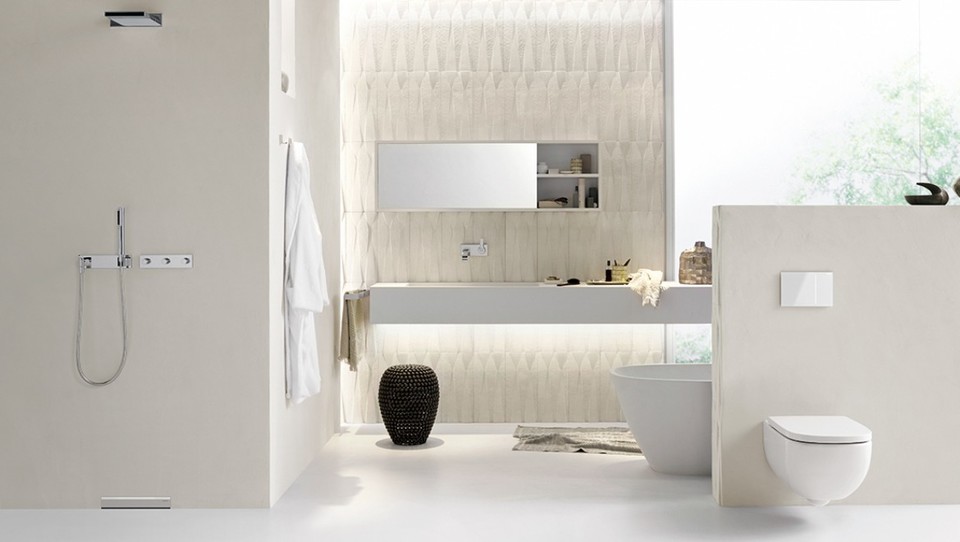 Koupelny pro hosty jsou vybaveny sprchovacími toaletami AquaClean a zařizovacími předměty ze série Geberit ONE.