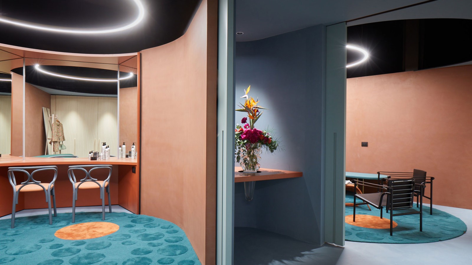 Aby taková oáza klidu vznikla, zadalo milánské Teatro degli Arcimboldi interiérovým firmám projekt úpravy všech šaten. V roce 2022 se šatny hvězd nazvané “Primo Camerino“ ujalo italské studio Calvi Ceschia Viganò.